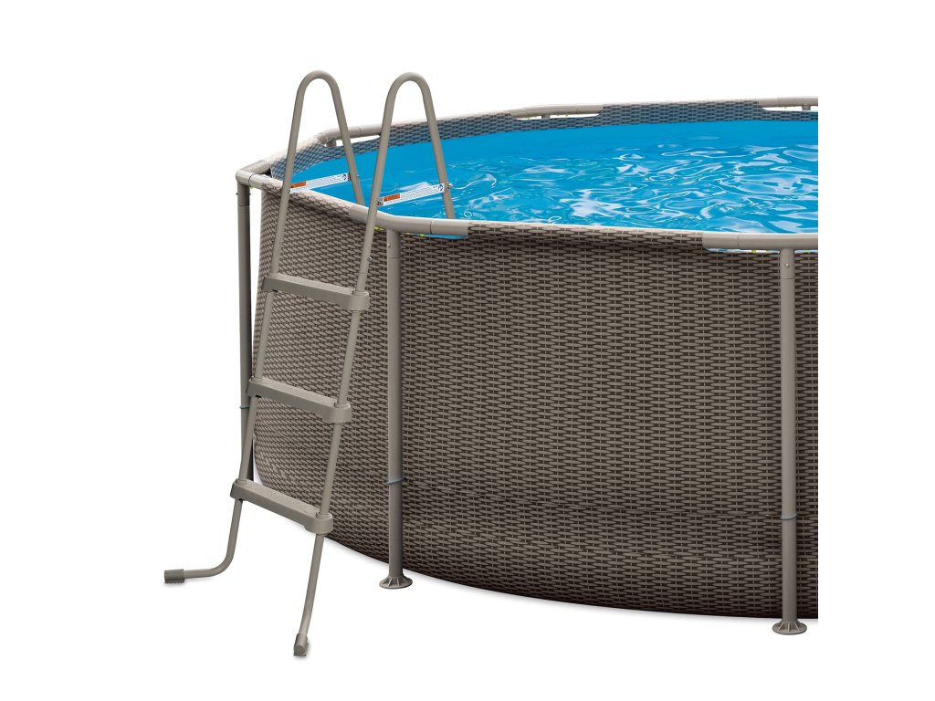 Bazénové schůdky 91 cm pro nadzemní bazény mají kovový rám a plastové stupně s bezpečnostním protiskluzným povrchem. Vysokou nosností až 150 kg. Jsou vyrobeny z vysoce kvalitních ocelových trubek s lakovanou povrchovou úpravou, vyznačují se proto velmi dlouhou životností. Díky lehké konstrukci pohodlně vložíte či vyjmete z bazénu.