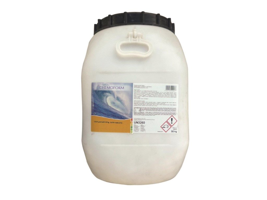 Chlór granulát, aktivní obsah chlóru 55%, organický granulát. Rychlorozpustný chlórový přípravek v granulované formě k likvidaci bakterií.
