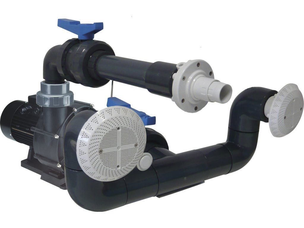 Čerpadlo by mělo být instalováno co nejblíže k bazénu, aby se dosáhlo maximálního výkonu a omezily ztráty způsobené třením. Původní průměry příslušenství z PVC, které jsou dodávány se zařízením, by měly vždy být dodrženy. Nedoporučujeme umisťovat čerpadlo dále než 15 m od bazénu. Čerpadla série NEW BCC, která jsou součástí zařízení Compass Jet, nejsou samonasávací, proto je nutné je namontovat pod úroveň hladiny. Hotová strojovna pro zařízení musí být dostatečně větraná, pokud je třeba i ventilátorem. Je nutné tak čerpadlo ochlazovat a zabránit srážení (kondenzaci) vodních par. Zajistíte tak správný provoz zařízení.