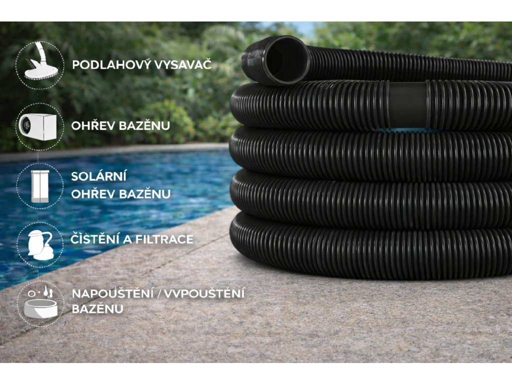 Bazénová hadice ø 32 mm je určena k propojení filtrace s bazénem a dalším bazénovým příslušenstvím (např. vysavač, vakuová hlava, tepelné čerpadlo, solární ohřev apod.).
