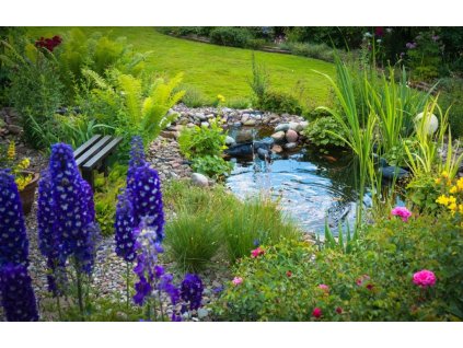 Okrasné jezírko Heissner CFD 1 – kompletní sada pro snadnou realizaci vašeho jezírka o rozměrech 1,3 × 2,3 × 0,5 m (variabilní tvar). Bez potřeby lepení či svařování folie....