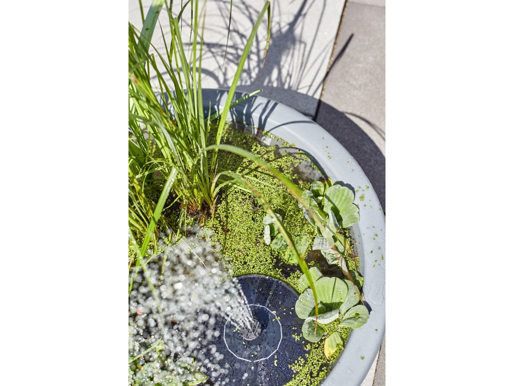 Čerpadlo o výkonu až 220 l/h a výškou tryskání 30 až 50 cm, pracuje čistě na solární energii, takže není potřeba externí elektrické připojení. Součástí balení je i dobíjecí baterie Ni-MH AA 1,2 V / 300 mAh, která umožní provoz i při nižší intenzitě slunečního světla. Solární LED koule jsou vodotěsné a dají se použít jako plovoucí osvětlení - úsporné řešení díky LED žárovkám, které automaticky mění barvy. Obsahují integrovaný stmívací senzor, který automaticky vypíná a zapíná světla při soumraku a rozednění. Obsahují integrovaný solární panel s vyměnitelnými dobíjecími bateriemi.