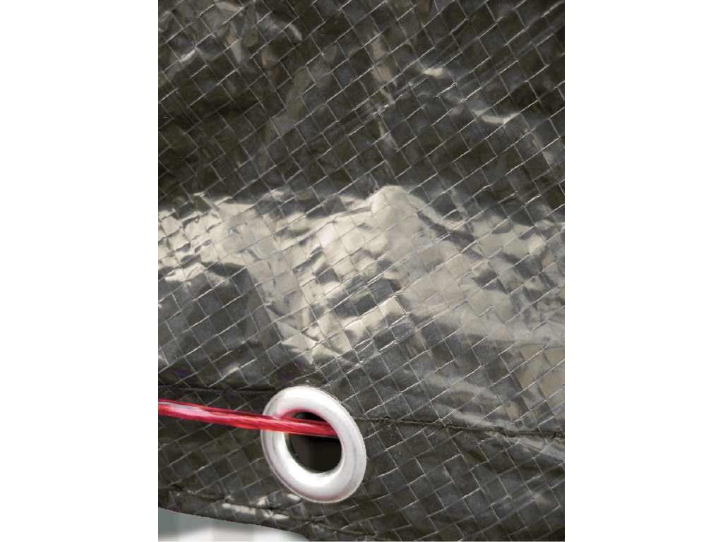 - Obsah balení: plachta s hliníkovými oky, kovové lanko, napínák s ráčnou.