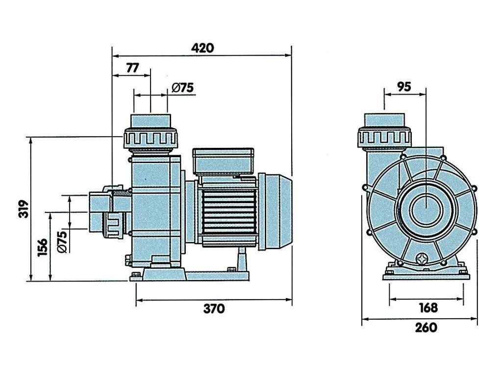 Samostatné čerpadlo k protiproudu, možno využít i jako oběhové čerpadlo k vodním atrakcím např.chrličům. Vyrobeno z polypropylenu s příměsí skelného vlákna. Umístění čerpadla by mělo být v suchém prostoru, pod úrovní hladiny vody v bazénu. Pumpa je vhodná pro předmontáže protiproudu Vag-Jet a V-Jet.