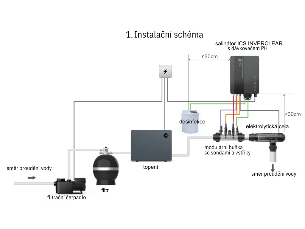 Stačí přidat sůl do bazénu a Automatická dávkovací stanice ICS10 MEDIUM se postará o vše ostatní. Přeměňuje sůl na chlór pomocí elektrolýzy, čímž eliminuje potřebu tradičních chemických přípravků. Zároveň bude automaticky měřit a upravovat hodnotu PH. Čistá a zdravá voda bez podráždění očí a pokožky je nyní na dosah ruky!