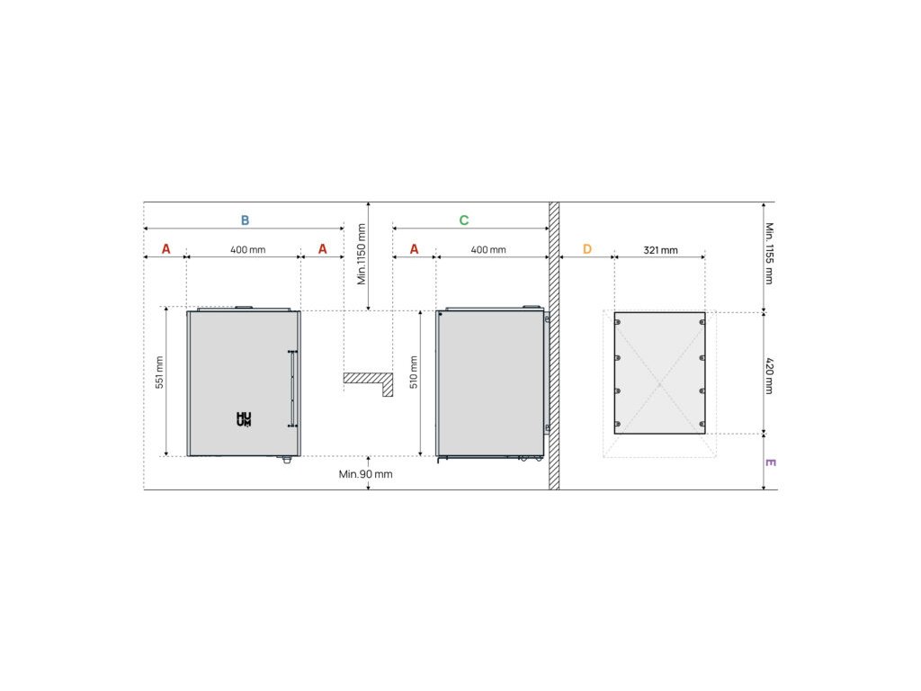 Rozměry: výška 551 mm, šířka 400 mm, hloubka 400 mm
