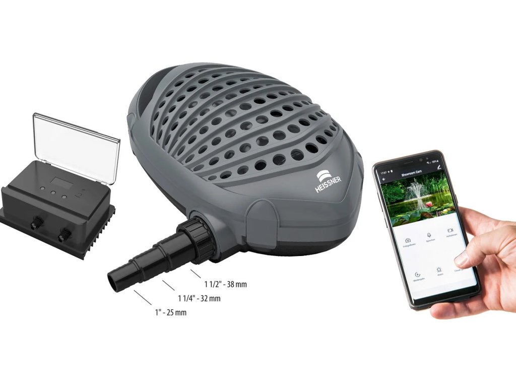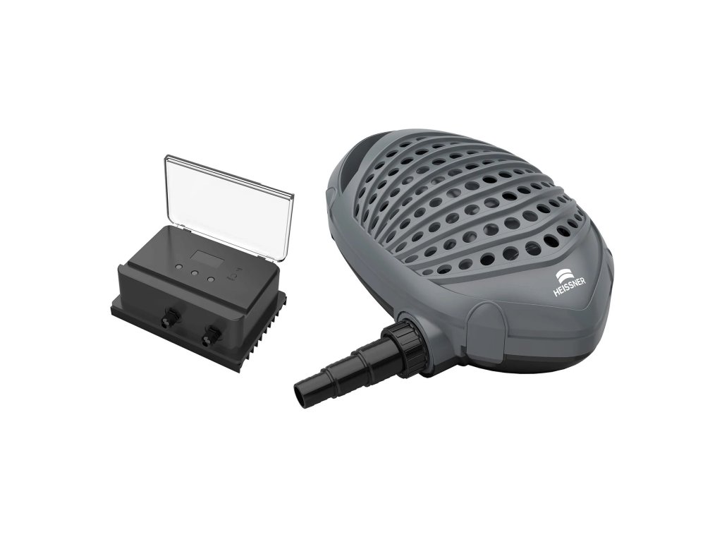Smart čerpadlo filtrační a potůčkové HEISSNER P20300E-00, na filtrování jezírka do 92 m³, regulovatelné 19 200 l/h 30 - 180 W, ovládání přes app pomocí wifi, nebo ovladačem, řízení průtoku zapnout / vypnout, průtok +/-, přestávka (např. na krmení), digitální zobrazení výkonu v % a spotřeby energie ve wattech, výtlak až cca 5,3m, spotřeba 30 - 180 W, rozměry (d × š × v) 43 x 27 x 15 cm, hadicová přípojka 1"-25 mm; 1 1/4"-32 mm; 1 1/2"-38 mm, doprava hrubých nečistot max. průměr 10 mm, délka kabelu 10 m, umístění čerpadla jak ve vodě tak i na sucho, záruka 5 let