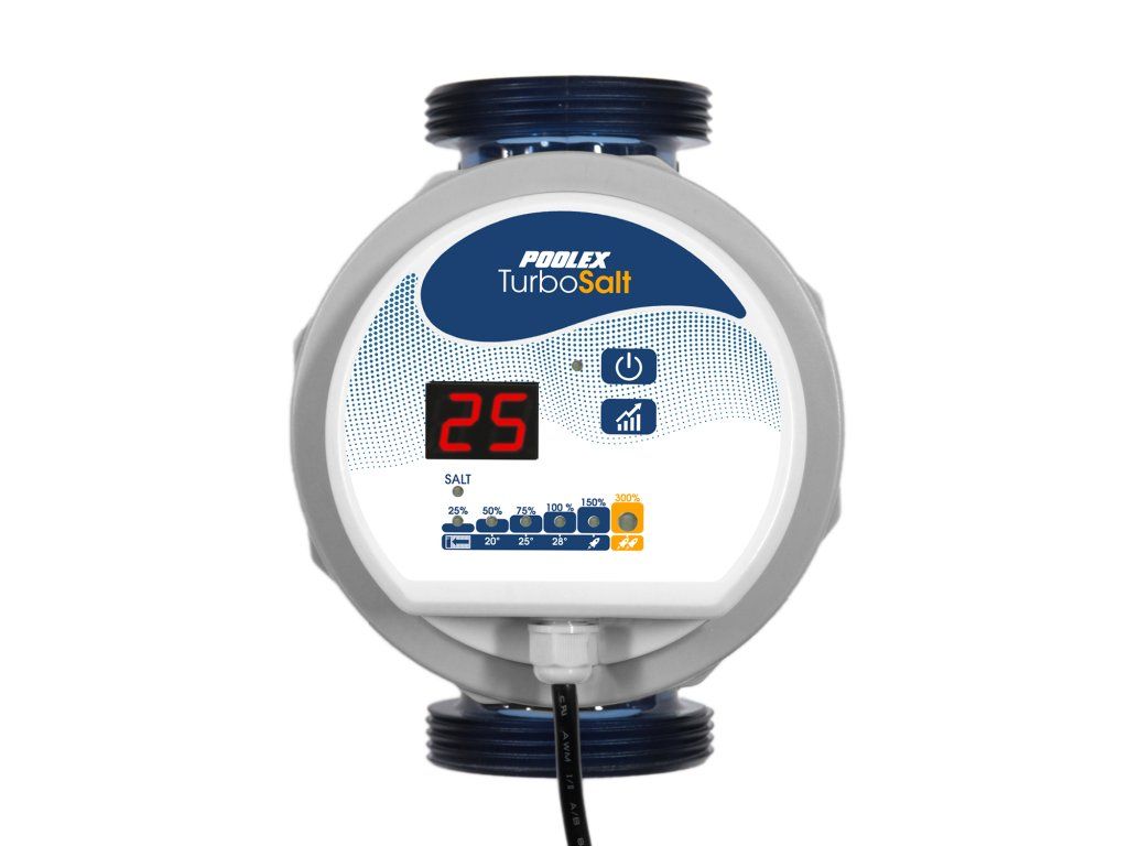 Dostupné pro bazény do 20m3. Turbo Salt je dodáván s připojením 50 mm (1' 1/2) a adaptéry 32/38 mm. Díky jeho upevnění na stěnu nebo podlahu se tento elektrolyzér přizpůsobí všem typům filtrace a jeho ultra-kompaktní velikost umožňuje instalaci i v nejmenších technických místnostech.