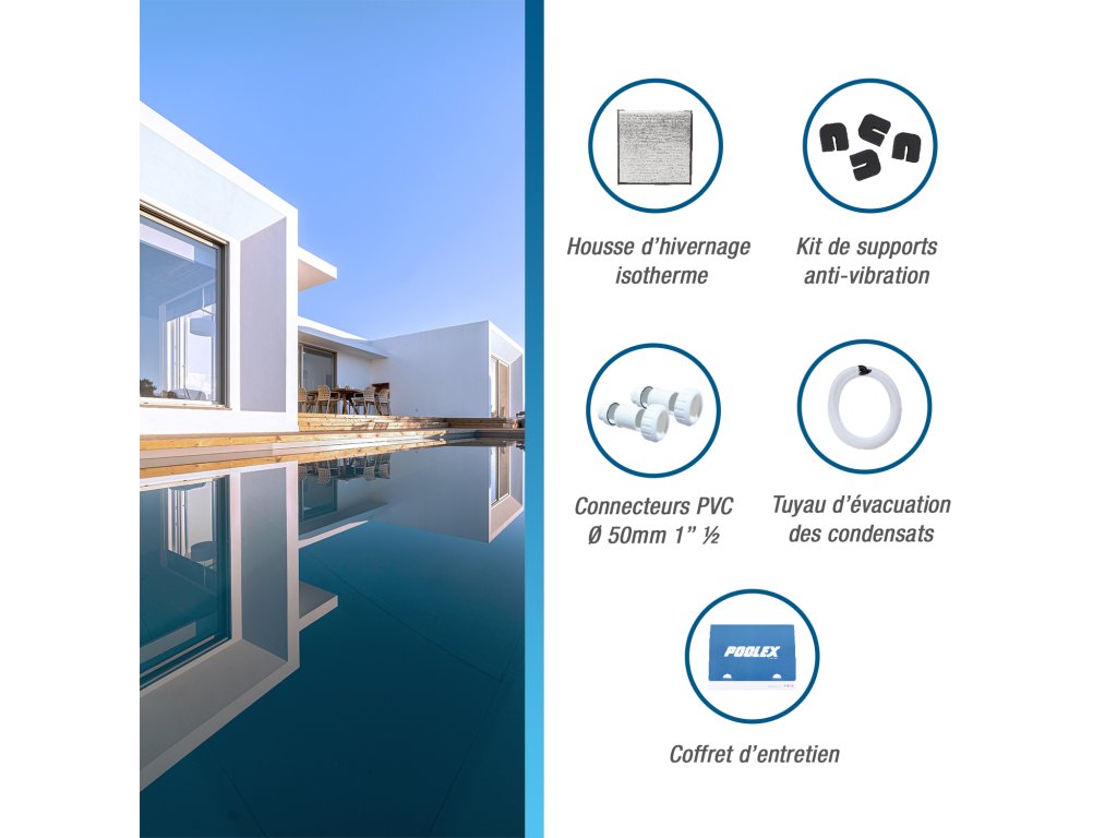 Je navržen tak, aby vydržel, těží z 3leté záruky na produkt, 5 let na kompresor a 10 let proti korozi jeho titanového výměníku, což je důkazem závazku společnosti Poolex zajistit kvalitu spolehlivého vybavení ve všech ročních obdobích.