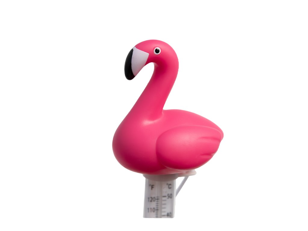 Plovoucí teploměr s roztomilým motivem plameňáka, který přesně měří teplotu vody ve vašem bazénu. Díky připevněnému provázku ho snadno přivážete třeba ke schůdkům, takže je vždy po ruce. Skvělá kombinace funkčnosti a zábavy pro vaše letní radovánky.